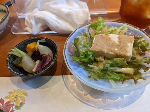 Read moreランチコースをお願いしました。 子供用のプレートを最初に持ってきてくれたのは有りがたかったのですが、大人用の箸しかついておらず、こちらがお願いして初めてスプーンとフォークが出てきました。 コースは妙に時間が空く時と、ポンポンと出てくるときと差が激しく、間が空いてしまう時間もありました。 お料理はヘルシーで美味しかったのですが、売りのお豆腐はゴマドレッシングを大量にかけられており、豆腐本来の味が全く分からず残念。 また、クーポン利用でソフトドリンク一杯無料となっていたのですが、会計で普通にソフトドリンク分も請求されました。 確認すると、食後のドリンクがサービスされるだけで、食中に頼んだものは別だと。 食後にドリンクなかったし、クーポンにもそのようなことは書いていなかったので...