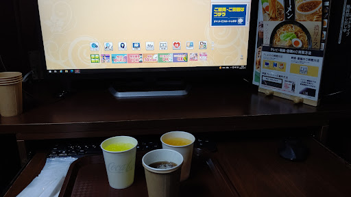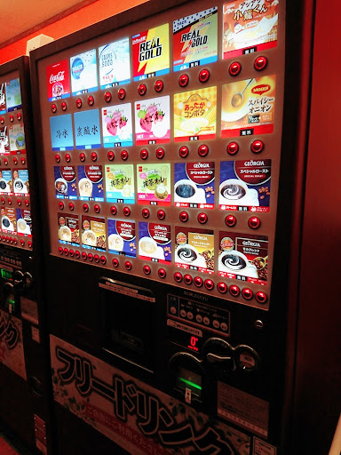 飲み物は全て無料の自販機(2台)から。 2台の自販機、ボタンの半分はコーヒー。 他県にはないアイス緑茶はあれど、紅茶や野菜ジュースや100%オレンジが無い。 烏龍茶も無く爽健美茶になる。 ミルクティー、カフェラテはあるけど、強制で砂糖入り。 甘い◯◯ラテとか要らんから、無糖カフェラテやレモンティーや、昆布茶、お吸い物飲みたい。 お湯だけ出せないのでカップ麺の販売も無い。 冷水も氷入ってない。氷だけ出せない。 毎朝8時~9時頃にベンダーがメンテナンスに来る。この時間は飲み物不可。