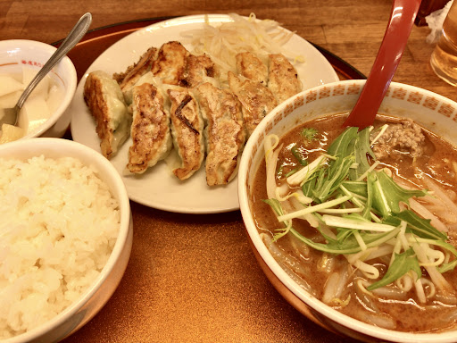 Read more餃子10個とライスと小さめのラーメンに杏仁豆腐が付いて980円のセットを注文。ごまラーメンが看板メニューなので、セットのラーメンもごまにしました。ごまラーメンは香ばしく、くせになりそうです。他のお客さんが「ごまラーメン辛さ3で」とか言ってたのですが、辛くしたら担々麺っぽくなってそれもいいなと想像しました。餃子はキャベツのザクザク感があって好みのタイプでした。ライスも結構多く、お腹いっぱいになりました。回鍋肉などの一品料理も色々あって便利なお店だと思います。ただ気になったのは、灰皿が置いてあったので、禁煙ではないのだろうと思います。今日は誰も喫煙している人がいなかったので良かったですが、一人でもいたらせっかくのごまの香りが台無しだったかもしれません。あと、慣れないと食券を最初に買うのに戸惑います...