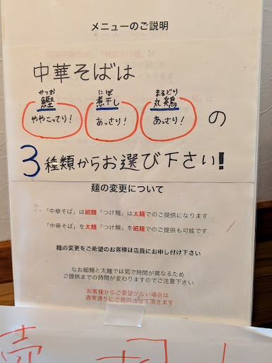 Read moreこちらのお店は食券制で、券売機の左上にはつけ麺のボタンがあります。中華そばは「鰹」「煮干し」「丸鶏」の3種類から選ぶことができます。