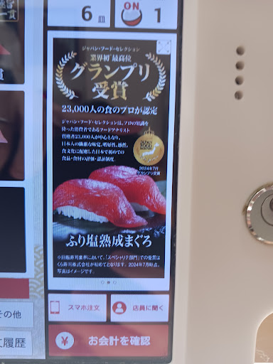 回っている寿司をいくつか食べたが、昔よりカバーが外しやすくなったと思うのでそこは良い。 ただ、若干雑な握り、盛りのものがちらほらあったのが気になった。