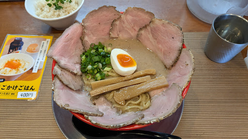 今回、ふわまるラーメンを食べるつもりで訪問した為、少し残念でした 朝ラーメンはメニューが違う情報が見当たらずに訪問したので仕方ない (以前は、ふわまるラーメンと和え玉を食べて美味しかった) 朝開店直後を目指し1時間かけて訪問しましたが今回の『赤い鶏骨ラーメン』はインスタントラーメンのスープに似た味のラーメン屋が多かった昭和~平成の時代なら美味しく感じたと思いますが今の自分には合いませんでした 物価高なのを承知で値段も大盛にしたとはいえ1200円は高く感じました、注文時に店員さんに『大盛❔』と聞かれ無料で大盛なら安いか…と勘違い (自分からは『赤い鶏骨ラーメンお願いします』と言って最初は大盛で声掛けはしていませんでした) メニュー表には大盛表記はなくサービスと思い込んでしまい大盛注文しレシート見て勘違いに気づきました