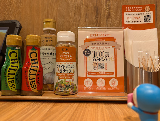 Read more2025/4/20 健康のため意識して野菜を食べるようにしているが、キャベツの千切りに少し物足りなさを感じている。もっといろいろな種類サラダを食べようとピエトロレストランを再訪。 パスタは気になっていた「博多明太子カルボナーラ」のサラダおかわり自由セットを注文。ドレッシングは前回なかった「うめ」、「焙煎香り胡麻」、「グリーン和風しょうゆ」でまず3杯サラダを頂き、パスタを食べた後に、「まろやかレモン」、「たまねぎリッチ」で計5杯サラダを食べた(さすがに食べ過ぎた)。 1番のおすすめは、胡麻のドレッシング