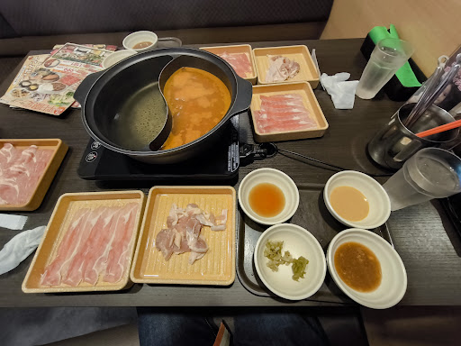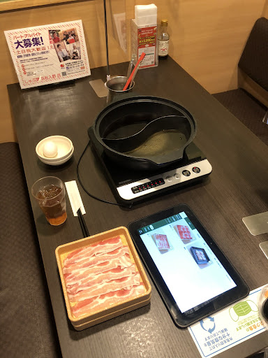 Read moreコロナが本格的に騒がれる前に、ディナーで来店しました。 中が結構狭い。大人4人でテーブルに座りましたが結構キツキツでした。 すかいらーくグループなのでファミレス寄り、小さい子供が居るご家庭向けですね。 食材は肉以外セルフサービス。ドリンクバー、野菜やちらし寿司、うどんなどもありました。 握り寿司は別途注文用紙に記入し、専用のBOXに入れるタイプの注文方法です。 野菜は結構多く、時期的にたけのこもあったのが個人的に嬉しかったです。 牛カルビのしゃぶしゃぶが新鮮でした。これが美味しかったです。