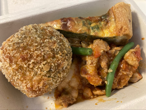 ライスコロッケと、キッシュ…と何品目か入ってました! ライスコロッケはシーフードとトマトの味のご飯でとても美味しかったです! キッシュは人によって種類が違ったので選ぶ楽しみもあってよかったです(^^) ライスコロッケもキッシュも家ではなかなかにやらないメニューなのでテイクアウトでもなんか特別感がありました。