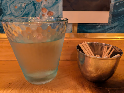 店内は掘りごたつ式のテーブル席とカウンター席。 お水とおしぼりはセルフサービス。 店主さんのワンオペなので、提供時間はそれなりに掛かります。