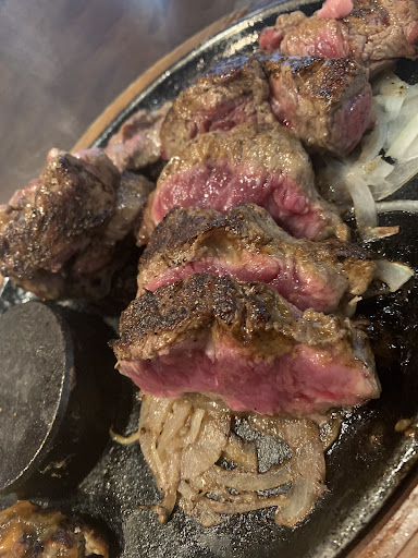 Read moreステーキが食べたい!と思い伺いました。 サラダバー付き(ライスやカレーなども食べ放題)のビフテキを頼み、ソースの種類を聞かれたのでフレッシュオニオンソースを選びました。しかし、運ばれてきたビフテキにはソースがかかっていませんでした。(ソースを選ばせた意味、、)店員を呼ぼうとしたけれど面倒だったため、一緒に行った人のソースを使わせてもらいました。また、味に関しては、あんまり美味しくないです。とりあえず硬かった。。💦ちなみに他の人が頼んだステーキを食べたら、ガムみたいでした😶(冗談抜きに) あと、ライスも美味しくなかったです(TT)どうやったら塩が入ったのか分かりませんが、塩の味がしました。(塩むすび的な感じで、一緒に行った全員がそのように感じていました。)その上水っぽく、大半を残してしまいました。デザートも食べ放題だということでしたが、ワッフルメーカーも汚く、フルーツやプチシューなどもありましたがなんだか食べる気がせず何も食べませんでした。また、サラダバーの時に使用するお皿は、濡れていました。拭いてないのかなぁ。。衛生面的にも怪しいお店だったし、肉も大して美味しくないし、ソースはかかってないし、二...