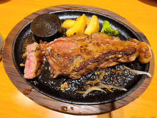 一応良かったと思う点も言うと、 「(ステーキをのせた鉄板は)熱いのでお気を付けください」 「(熱い鉄板に)ソースをかけるとはねるのでお気を付けください」 という客の気づきにくい点を注意してくれるのはよい。