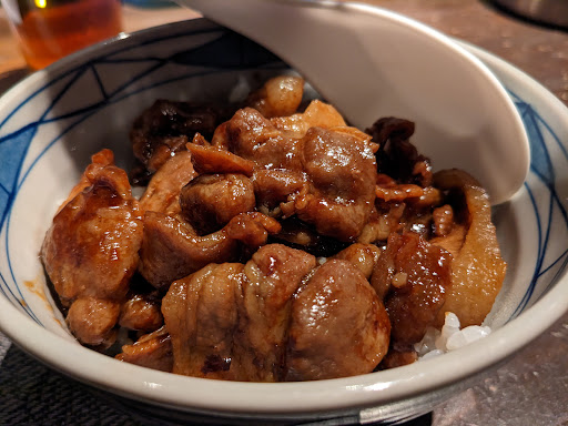 『北海道帯広名物』豚丼は、ご飯を覆い尽くす豚肉がドーンと盛り付けられ、濃厚なタレが、豚肉はもちろんのこと!白米にも当然よく馴染んで、とっても美味しかったです。