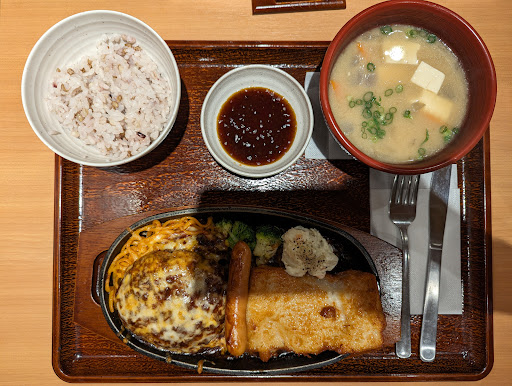 また、チキンステーキは、鶏のモモ肉に大蒜と胡椒の食欲をそそる味付けで、別皿の醤油ベースの和風ソースをかけると、奥深い味わいの中にピリッとしたアクセントがあり、ウインナーは、ハンバーグとチキンステーキに挟まれて、それぞれのソースの味が混じり合って、三者三様のグリ...