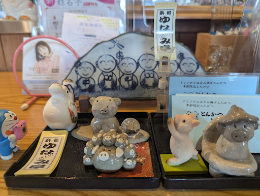 銘柄豚『はまな三丁目の豚肉』を使用したとんかつの専門店で、店内に入ると、レジの前や棚の中などに可愛い豚さんたちが、いっぱい並んでいるので、思わず写真をパシャリ!と撮ってしまいました。