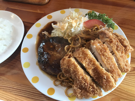 Arrived at opening time before the start of the lunch rush. The atmosphere is like a country town restaurant with plenty of Manga books to read to while away the time before your order arrives. Ordered the Hamburg lunch set and the spaghetti Tonkatsu lunch sets which came with a good sized portion of beef and light greens and a side of fluffy steamed rice. Meat was thoroughly cooked and taste was average, not too rich. Tonkatsu was not very crunchy but was satisfying to bite into. If you order the Supa Katsu it comes on a hot plate but the hamburg didn't. Cold water is self serve. Price is about ¥1,000 per dish set. Looks like a mom and pop run establishment so getting your food in a timely depends on the number of customers, luckily I didn't have to wait...