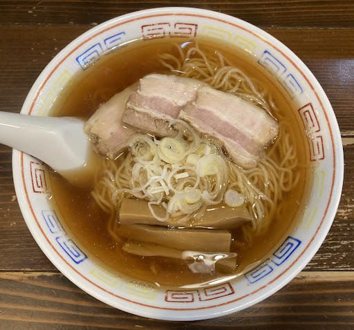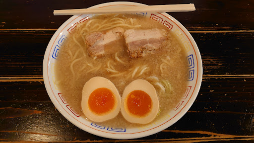 Read moreとても美味しかったです。醤油ベースでこってり目。トッピングに味玉ものせました。料理を出すのも10分弱と早め。入り口に入ってすぐに食券を買う仕組みになっています。両替も対応してくれました。店内は昭和レトロで統一されていて素晴らしいと思います。ライトやポスター、温度計も昭和レトロな感じになっています。さらに製麺機のようなものがあり、麺はおそらくそこで作っているのだと思われます。入り口は大きな段差があり、道路から入ると車の下回りをぶつけます。最低地上高ノーマルのプリウスでぶつけたので、セダンやコンパクトカー、スポーツカーなどのSUV以外は十分に注意してください。お店の外観は錆びたトタンが貼られたりしていて、ボロさがありますがそれは演出だと思われますので、ぜひ立ち寄って...