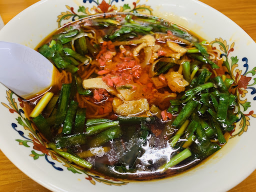 Read more仕事が一段落してホッとしたところで、ガツンとしたお昼が食べたくなり、東和町のさかえやさんにお邪魔しました。 お昼時ということもあり混雑していましたが、運良く待つことなく着席できました。 久しぶりの訪問でしたので、オーソドックスに満ニラ(味噌)880円の大盛+220円を注文❕❕ ひとくちスープを口に含むと、味噌と辣油、ほのかなニラの香りに食欲が爆発❕❕辛味のお陰で汗をかきかき、一心不乱に食事をすることに…食べ終わった後の満足感と無くなってしまったことに寂しさを感じ、もっとゆっくり食べれば良かったと反省… 私的には、もう少しニラがあっても良いかなと感じました。 味としては塩味が強めで、ライスとの相性が良いです。 温度は熱すぎず、ぬるすぎずで、私的には適温です。 麺は細いストレート麺で、さかえや独特の麺です。麺が伸びるのが早めです。 総体的に美味しくいただくことができ、満足な一杯でした...