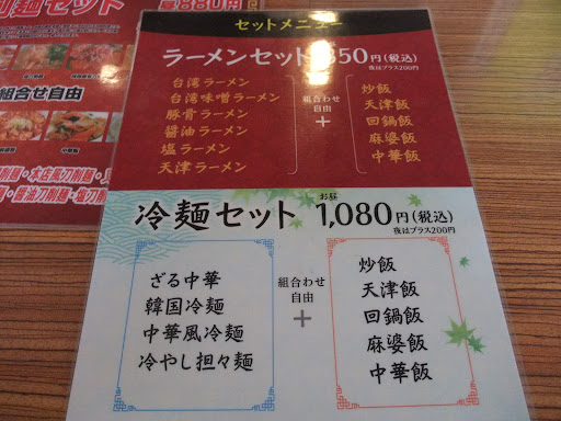 今回は、安価なラーメンセットということで 台湾ラーメン+天津飯をチョイス。
