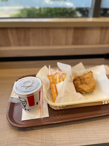 Greasy chicken. I had to order everything myself via computer. On the plus side, there is English. My order was Spicy and Regular Chicken. Yeah, the spicy was a part of the chicken I don't like and the regular drumstick was missing a lot of coating. The small coleslaw was "small" 3 bites and done. I paid for the premium..... But, it was not stellar. You'd hope for from-the-fryer-fresh considering the price. But no, you just pay a lot for lukewarm chicken. No pepper for the coleslaw. So, enjoy your three bites. Chicken was either super greasy or missing batter. Oh, the hot sauce was spicy. But it was a creamy based variety, so not good just creamy and spicy. I don't eat KFC here much. It's just expensive and not worth the niblet of meat you get. The store I went to had a nice Grandma employee who was pleasant and did her Ernest. Store-fine Product-lacked and expensive It's just an expensive place to purchase fried grease. Little to no value. Tastes like it...