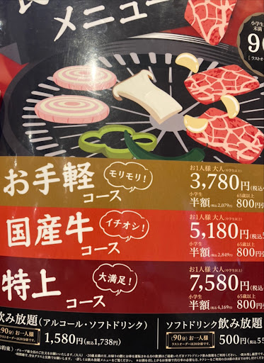 味に関してはじゃんじゃん亭のときと同じです。 じゃんじゃん亭のメニューに国産カルビを足した感じです。 美味しいけど牛角には負ける、という感想です。
