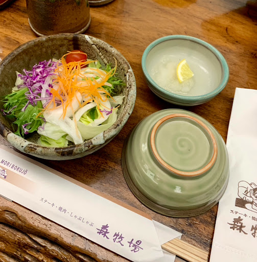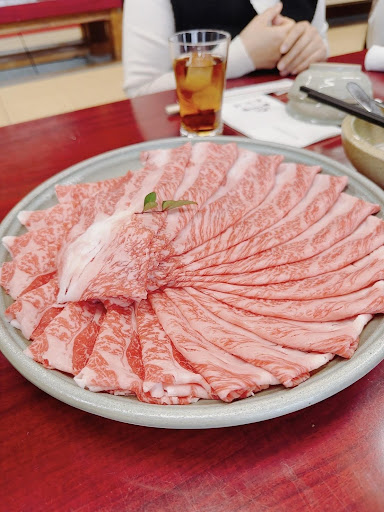 Read more以前からステーキで有名なお店だと認識していましたが、訪れるタイミングがあわず、やっと実現しました。 最近、すき焼きにハマっているのもあり、たまたま取り扱っているのを知り、極上和牛コース(11000円税込み)をお願いしました。 前菜は和牛のタタキをポン酢大根おろしで頂きました。さっぱりして肉の脂っぽさは無く美味しい! メインのすき焼肉は、三河牛のA5ランクでした。関東風のすき焼きで野菜やキノコ、豆腐を入れ割下で煮る感じです。私の好みは、関西風すき焼で牛脂で鍋に脂を染み込ませ、肉のみを入れ、砂糖をまぶしたまり醤油で肉を焼きます。卵に付けて頂くため濃厚な味付けがまろやかになります。 森牧場さんでは、割下が濃い目のため水で好みに調整して煮込み味を整える感じです。自分の好みに味付け出来るため、関東風でもたいへん美味しく頂けました! 〆にうどんが付きますが、量が半端ないので、食べ過ぎに注意して下さい。 肉の量は200グラム程あるため、男性でも満足出来ると思います。 デザートは静岡産のマスクメロンとオレンジでメロンは熟しきっているので、激甘!コーヒーorアイスクリームを選べます。ストロベリー、ゆず、抹茶から選べます。 近場で美味しいお店のため、次回はステーキを頂きたいと思います。 予約は必須です! お電話代として会計時に肉味噌を...