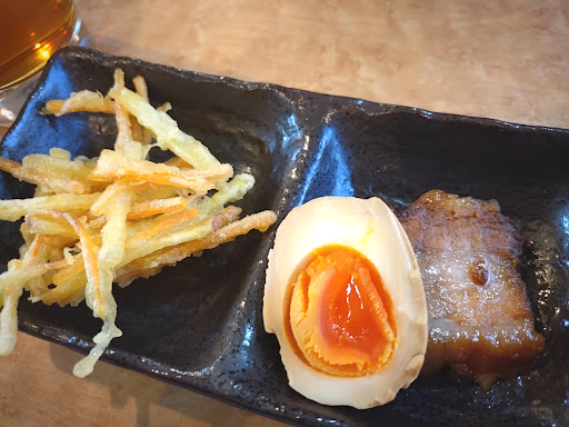頂いたもの ●お通し〈さつまいもと人参のかき揚げ、豚の角煮、味玉〉 お通しから豪華でした! ●ふわふわだし巻き玉子 ふわとろ食感で、優しい味の出汁が口の中で広がりました ●串揚げ〈チーズ〉 はちみつが付くのが嬉しい♪ ●特大海老フライ 薄いサクサク衣で、身がしっかり詰まってます!大きな海老をしっかり堪能できるので海老好きにはおすすめです ●石焼きとり親子丼 炭火焼きの鶏肉と自家製タレが絡んでおこげまで楽しめる逸品です ●長芋バターステーキ ジュワジュワバターとシャクシャクの長芋が好みでした👍 ●ちくわ磯辺揚げ 衣サクサク中もちもち♪ ●炭火串焼き〈せせり、ぼんじり〉 ほんのり塩味が旨味を引き立ててくれます!食感、味、ともにすごく美味しいです