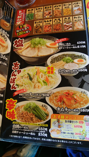 他のメニューは「醤油とんこつラーメン」「しなとらラーメン」「塩ラーメン」「ちゃんぽん」「台湾ラーメン」など、バラエティーに富んでいる。代表的なラーメンの系統は揃えましたよ、全方位完備ですよといった感じのラインナップで、今度...