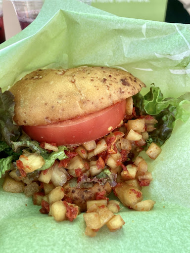 テーラテールのパン生地に、野菜をたっぷりサンドした、ヘルシーなバーガーでした🍔