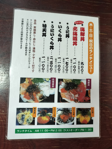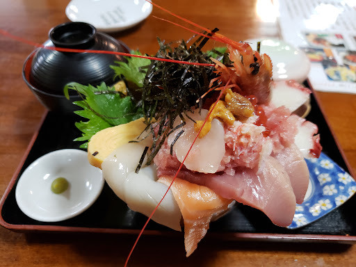 Read more評判が良く並ぶと聞いたので開店5分前に到着しました。が、開店時間過ぎても開店せず…5分遅れて開店。 店に入ったら右側厨房覗いてみて下さい。 セットされたシャリが見えています。 入店したら早い者勝ちで注文します。 並んでた順じゃないんだ…。 注文合戦に敗北すると入店から30分しても提供されません。トップ勢は食べ終わって退店していきます。 セットされてたシャリ丼はなんだったの? 40分待って北海道丼と海鮮丼が来ました。 刺身はどれも鮮度が悪く甘エビは完全に傷んでおり食べませんでした。 セットの茶碗蒸しは冷たくデザートのオレンジは干からびており食べる気無くしました。 シャリも所々乾燥して固くなっていました。そりゃそうですよね?開店時からセットされてたんですから…。 見た目の豪華さと値段は良いですが肝心の鮮度と衛生面は頂けません。 気になる方は料理作っている大将をご覧になると良いと思いますよ! この店に高評価付けてる方、大丈夫ですか?と言いたくなります。 あと数百円出してでもまともな海鮮丼食べたくなります。 食事後には鮮度の悪い刺身食べた後の独特な心地悪さが口内を占めました。 私からは何も言いませんでしたが相方も「もう来ることはないねw」と言っていたので同じ気持ちだったのでしょう…。 値段なりです。...