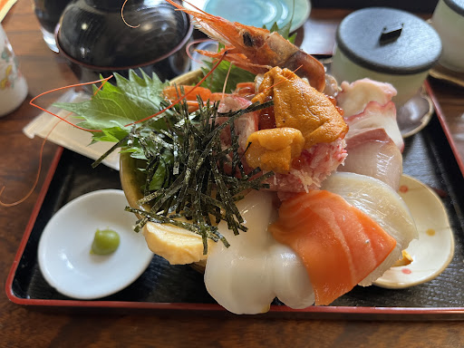 Read more入店し、店主(?)に声をかけても無視される。ホールの女将に人数を伝えるも、視線をそらし無視される。声かけは全くなく、目先の作業のみ優先の様子。先に、席についているお客が見かねて、待機リストに記名するよう教えてくれたが、ごみ袋の下に隠れており、初見では見つけられない。空席はあるのに、入り口そばで10分ほど立ったままで居心地悪く我慢で待つ。会計の客が何組も帰っていくのを尻目に、いないものとして扱われる。 突然女将がジェスチャーのみで席を指示。戸惑いながらも着席できた。 後からきたお客も、無視され続け、呆れ顔。私の来店してからの扱われ方を伝えたら苦笑い。 Googleのレビューに、同様の仕打ちについて記載があり、事前に予測していたため、さほど怒りはないが、初めて来店したら間違いなく戸惑い、不快な思いをすることであろう。 北海道丼(1080円)、ごはん大盛りを注文。料理は割りと早く、数分ほどで出てきた。レビュー通り、皿から溢れんばかりの海鮮丼。ネタは新鮮で美味しくボリュームもある。酢飯は微妙な感じなので、普通サイズでよかったのかも。味噌汁と茶碗蒸しは冷めていた。 店は慣れた客(?)で賑わっており、忙しさも祟って新規の客は歓迎ではないのかも知れないが、少しの配慮がないために、戸惑い不愉快が印象に残った。料理のコスパはそこそこなので、接客を、差し引いても、また食事にいくかもしれない...