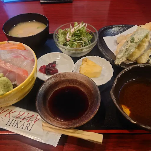 Read moreランチは予約不可。 早いもん順です 駐車場は広く15台前後は止めれるんじゃないかな? 店内に入るとやっぱり満席🈵 受付のお姉さんが慣れた対応で名前と車のナンバーを言えば順番が来たら教えに来てくれます😊 注文は海鮮丼ランチ。 旬のホタルイカが誇らしげ🦑 天ぷらもアツアツサクサクうまうま。 店名通り魚料理が推し🐟 でも、まわりの注文は季節限定のカキの炊き込みご飯かエビフライ定食が多そう。 女性客が多いのは人気店の証拠。カウンターもあるからお一人様もちらほら。食事㊥ずっと満席で次から次と来客が。 すご。 ちょっとお高めだけど、ほんのり高級感もあり、満足満足。 ごちそうさまでした♪