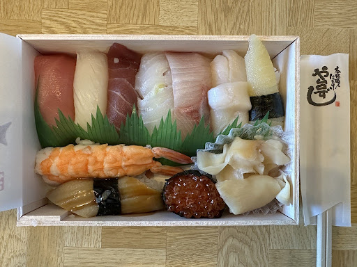 (20240520更新) 持ち帰り始めたらしく、一体どの程度の寿司を売ってるのか気になり、先日2千円の寿司を購入しました ・1,700円くらいの寿司発注、会計が2千円超えてたので驚き ・消費税抜き金額だったのと、容器代110円が追加でかかった ・お土産用の割としっかりした寿司折箱だが、自分で食べる分には焼きそば入れるパックでいいし、選べた方が良い ※しっかり目の折り箱だったから余計に良く感じたのかも知れないが... ・金額は最初から消費税と折箱台込みの金額で表記した方が良心的に感じる