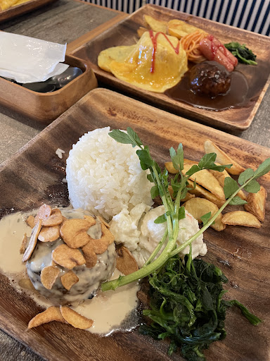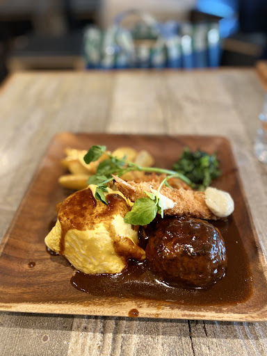 ハンバーグは注文を受けてから焼かれるので15分くらいかかります。 焼きたてを食べれるのは嬉しいですね! 丸っこいハンバーグで肉肉しい。 フライドポテトがたっぷりあり、ボリューミーなランチでした。