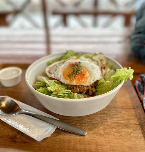 Cute cafe and general store 90 mins from my house. Unfortunately, I couldn’t catch the name of this pictured dish in my photo but it’s basically a sunny side up egg over a grain, veggies and bacon patty over rice with some lettuce. It has a nice curry flavor and a little bit of spice. I love this area but there aren’t that many options for lunch, so I was grateful they are often open. It’s part of a much larger complex as others have mentioned. I found it to be a most pleasant place to spend a cold and rainy afternoon. No hike for me today. Just a nice view of the mountains and river....