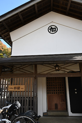 蔵を利用したカフェで、とっても良い雰囲気でした。 屋根のある門をくぐって、右側の蔵の方へ サイクルラックもあります。 駐車場は、9台分あるようです。 テラス席もありました。 我我は蔵の中へ お手洗いは、蔵の外にあります。きれいで快適。