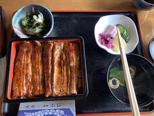 Read more飯能市で初めてうなぎを食べた。飯能市に住んでいるといつでも行けると思い後回しにしていた。 畑屋と言ううなぎ専門のお店が2023年に主人が亡くなり廃業し、昨年より土日祝日のみかき氷屋として再開したそうです。 コロナの前に一度行ったことがあるが予約せずに行ったのでいっぱいで入れず、駐車場もいっぱいで諦めたことがあり、今回飯能で鰻重を食べようと思って畑屋をGoogleで見てびっくり! 仕方がないので、うなぎで検索すると一ふじという東飯能駅前にある天ぷらや刺身などと鰻重や泥鰌の店を予約して行って来た。12:30。 特上鰻重が3,800円と安い。味はまあまあという感じで特別美味いということはなかった。長男はボディビルの大会前で食べれないので来れず、俺と嫁と孫が特上を。天覧山を飲む。 女房が今回は一緒に来て天ぷらと刺身の定食2,300円を注文。長男に土産に黒ニンニク700円を帰りに購入。 支払はペイペイと現金のみ。ペイペイも金額が足らず。現金で女房が払った。...