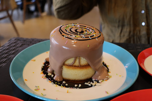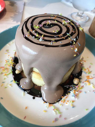 3人で行き、1人1つのパンケーキと飲み物、みんなでわけるサラダを1つ、頼みましたが、まずきたのが写真のチョコレートソースがかかっているパンケーキ。 サラダが先じゃないの!?と驚愕しつつ、その後に来たのは飲み物。 それから他の2つのパンケーキは10分くらい待ったと思います。パンケーキと飲み物が全て揃った時点でサラダは来る気配が無かったので、お店の人に作ってなかったらキャンセルにして下さいと伝え、キャンセルにしました。