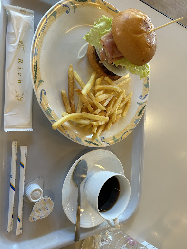 Read moreオープンして初めての連休でキャッセも賑わいお客様もたくさんいました。イートイン。先に席を確保して下さいと張り紙あり。ゆったりとした椅子。子ども用の椅子も5、6台あったみたい。注文、会計し、ベルをもらいちょうど厨房が見える辺りの椅子に座りました。厨房を眺めていると、トレイに並べられたポテトの列。バーガーが出来上がるのを待ってるポテト達。冷めちゃうなぁと思いつつ眺める。案の定冷めたポテト。しなしな。バーガーは、チーズを抜いてもらいました。レタスシャキシャキ♪トマトみずみずしい♪玉ねぎも入ってたみたい。ベーコン柔らかい♪お肉はなんか、塊が噛み切れない(私が歯が弱いんです)お行儀悪いけど、塊出しました。相方は美味しい!と言っています。ホットコーヒーは、小さなカップに7分目しか入っておらず、少なっ!!まだオープンしたばかりて慣れてくればもっと良くなるはずです♪ぜひ、ご賞味あれ♪今度は...
