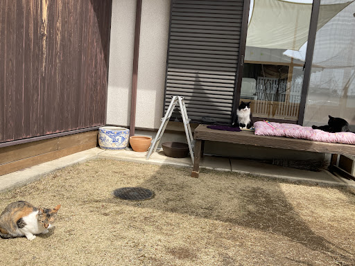 私が訪問した日は晴れており、庭で日を浴びながらの猫ちゃんとの触れ合い、最高でした!
