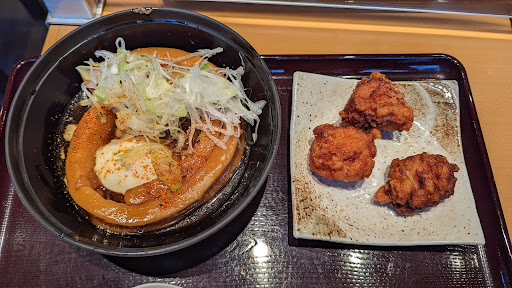 Read moreタイトルは忘れましたが池波正太郎の食事のエッセイを読んで、食べてみたいと思っていた一本饂飩が食べられるお店があると知り、数年前から行ってみたいと思っていたお店にようやく伺えました。 お店自体はフードコートの様な仕様で、食券を購入してから提供までが異常に早いです。 一本饂飩は、おそらく見た目がエッセイに書かれていたものとは違いそうでしたが、非常に太くてちくわぶを甘辛く醤油ベースで煮た様な感じでした。 ネタでしかないようなメニューだと思いますので、また注文することはないでしょうが、満足しました。ちなみに量はそんなに多くありませんので単品だ...