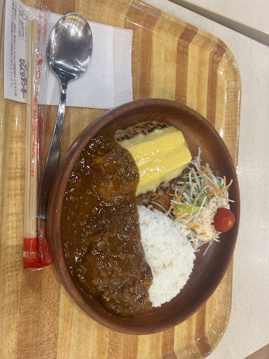 近くにびっくりドンキーがなくて、イオン内にあるのは知っていたので、初めてこちらでいただきました。 普通の店舗で食べるほどのメニュー数はなく、ディッシュのものしかないですが、サラダが2倍にできたり、ライスの量を減らしたり増やしたりでき、トッピングもいくつかなのでしょうけれどありました。ハンバーグはワンサイズのみですが、プラス310円で追加できます。実はパインの乗っているハンバーグを食べてみたかったのですが、それはなくて少し残念でした。 早めの時間だったのでフードコートの席は空いていましたが、窓際席を選び夫と隣同士で食べました。外の風景を見ながらの食事は良かったです。 私はサラダ2倍、ライスは少なめにしました。結構ボリュームがありました。レギュラーバーグディッシュのソースの味が大好きです。夫は唐揚げとカレーのハンバーグにしていましたが、からあげはサクサクっとしていてジューシー...