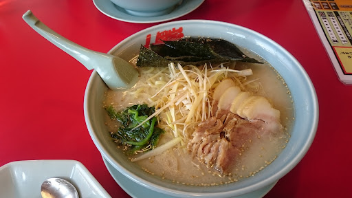 2017年7月2日(日)11時半前に行きました。 この日は隣のはま寿司さん目当てでしたが、待合室に5組ほど座っていたのでプランBに変更しました。 下の投稿を見ると、ほぼ一年ぶりですね。 決して満車にはならないであろう広い駐車場には、普通車が10台ほどと大型トラックが1停まっていました。 入店すると店員さんからいらっしゃいませと掛け声が掛かりますが、以前より大人しめになったようです。ファミレス感覚で家族連れが立ち寄るラーメン店ですからね。この方が合っているのかもしれません。 先に食券を買いました。期間限定旨辛スタミナラーメン大盛り(税込1,050円)です。それと、テーブル席に着いてからサービス券が5枚あるので無料になる餃子を発注しました。 希望のラーメンの固さ、濃さ、脂はすべて普通としました。 待つこと10分。旨辛スタミナラーメンの登場です。これにおろしにんにくをたっぷり入れました。 スープは濃いですね。しっかり味が感じられて好きです。加えたおろしにんにくがまた旨いこと。添えられたチャーシューはとろっとろではなく昔ながらの肉厚なものでした。食べ応えありです。 ただ、餃子が熱々ではありませんでした。少しラーメンを減らしてからと思いましたが、時間の割に冷めていました。来たらすぐ食べないと本来の味を感じられないかもしれません。 日曜日お昼の客層は、幼児と児童を含めた家族連れが多く、次は単独でカウンター席に座る人の順です。 仕切られてはいませんが座敷席もあるのでいろいろな目的の方に利用していただけそうです。 駐車場は広くフラットな出入口。一番奥のテーブルなら人は通らないので車椅子の方もそのまま食事出来そうです。 またはま寿司さんが混んでいたらプランBで行こうと思います。