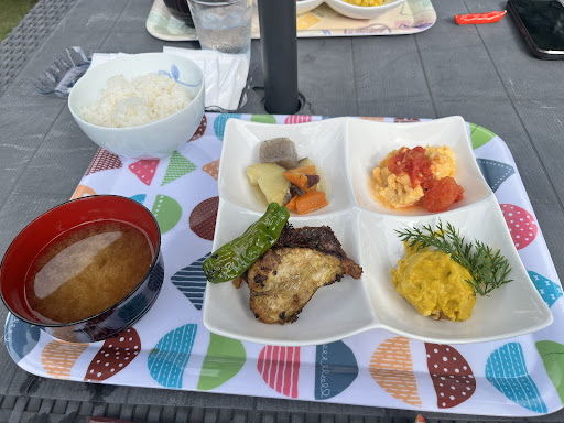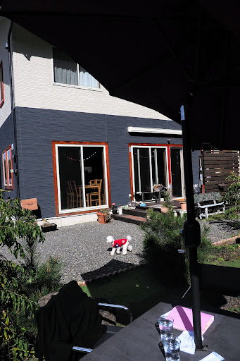 A very friendly woman runs this cafe out of her house. It is surrounded by farmers' fields, and the outdoor tables provide a beautiful and relaxing view of the mountains. Some of the tabled are located in an enclosed dog run so owners can let their dogs run free as they eat - and the owner mentioned that because they are in the shade they are quite cool in the summer. We ordered 2 lunch sets (one with meat/katsu, and the other with fish/nambanzuke), which both included a shiso drink, salad, miso soup, rice, and coffee. All the food was handmade, delicious, and beautifully presented. We will...