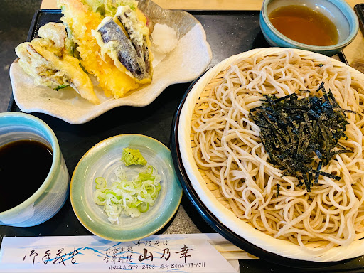正直ひどい経験でした。全て0つけたい! 8月16日、翌日の登山のため近くで食べれる所を探して訪問。 夕方6時25分、お店に到着。レビューには待ちは少ないとあったのですが、待ち2組、2名と8名、お盆なのでしょうがないかなと。 7時10分ぐらいに席に通してもらい、すぐに天そばと、相方が山の幸そばを注文。着いた時には混んでましたが、席に着いた時はほとんどの席が空席で、残りのお客さんは個室の団体様。 天そばだったので20分ぐらいで来るかなって思ってたのですが30分立っても来ず。店員さんにどれくらいか聞いたら8名様のお先に優先するので分からないですと返答。えーと?ほとんど同じタイミング、少し向こうの方が早いくらいで席に着いたのに、お客の人数に臨機応変に対応できないのかなって。なら注文する時に一言時間かかるぐらいあっても良いかなって! そしてそこからさらに10分、7時50分頃注文した天そばがきて、相方にはどこかの席のネギトロ丼がきました。違いますよと。そこから3分ぐらいで山の幸そばがきました。この時点ですでに40分ほど待ったのですが、私の天そばにはメニュの写真に載ってる天つゆも、大根おろしもついてなく(写真参考)天つゆありますかって聞いたら、欲しいですか?おろしも?と返答され流石にそれは無いんじゃないかなと。ここまでの対応がひどすぎて味も最悪に感じました。 地元民や混んでない時はいいのかも知れませんが、静かに待ってたにも関わらず舐められた接客されスト...