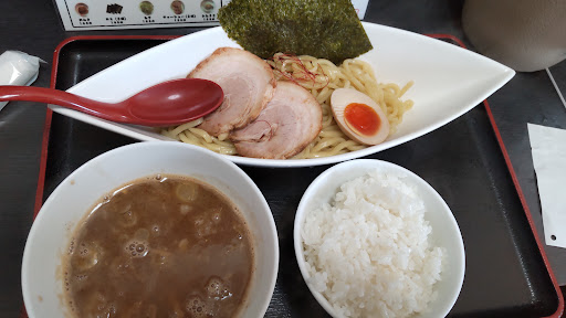 まず つけ汁ですが やはり魚介系と書いてあり 正直 魚介系が苦手の私でしたが 思ってたより臭みや 生臭さもなく 食をそそる香りでした。 また つけ汁には ネギやメンマ チャーシューの角切りまで 具が入っていて ちょっと驚きでした。(つけ汁って 具入りが当たり前?) 麺は 極太麺で モッチリして つけ汁に とてもからみつき 思ってる以上に美味しかったです。 つけ汁も濃いので ライスともよく合って 麺もライスもあっという間に 完食しちゃいました。