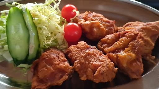 からあげ(チキン)ランチ を チキン は 胸肉 です フカフカした、柔らかい フリッター風の揚げ衣が、程よい味付けで 美味しい 鶏肉の旨味がたっぷりの、しっとりした歯応えのある胸肉の からあげ と、少し堅めのご飯 を 口の中で ゆっくりと よく噛んで じっくり味わって食べると、脳内でドーパミンがドバドバ出ます 多幸感