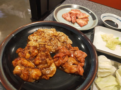 インスタで見つけて伺いました。 一番最初は奥のお座敷で相部屋でした。 内蔵系ばかりだったからか、ロースターの火力がとにかく低く、全然お肉が焼けなくて豚トロ頼んで乗せてみましたがダメでした笑 でも上タンとサイドメニューのネギが美味しくて、ほかの席なら大丈夫かも、と懲りずに2回目。ストレスなく食事できました。 赤肉はほとんど食べず内蔵ばかりですが、どれも美味しいです。お肉の品質、切り方、大きさも他所ではこのお値段で出しているところ少ないと思います。 ナムルが市販品なのかな?あまり美味しくないのとサンチュに味噌がつかないのが残念ですが、アルコールを飲まない我が家は2Lペットボトルの烏龍茶が本当にありがたいです。 3人でお腹はち切れるくらいに食べて1万3千円くらい。安いです。PayPay使えるのも嬉しい。 3度目はもうわかってきたので家族それぞれお気に入りができて注文することができました。 これ...