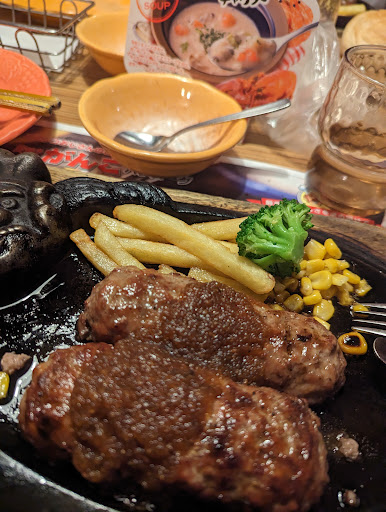 Read more買い物の帰りに妻と遅めのLUNCHで訪店しました。店内はそこそこ混んでおり、10分程待ちましたが、すんなり席に案内され、アプリの特典利用のお勧め等、丁寧な接客を受けいい気分でした。全体的に何となく人が足りてない感じで、厨房はピリピリ…ホールはパニック、サラダバーの皿の補充が間に合わない等、大変さがありありと見て取れました。料理は定番の美味しさでしたが、運ばれてた時には既に鉄板が冷めていて、ジュージュー感が無く、ポテトも冷たく…残念!それでもホールの皆さんの元気な接客に気持ちよく退店しようと立ち上がったら、近くのホール店員が過呼吸でうずくまってしまい、ただでさえ人手不足なので、他の店員が十分にケア出来ない様子で、お節介とはおもいましたが、過呼吸の対処方法をアドバイスさせてもらいました。以前の職場で過呼吸症状の従業員がでた時、産業医から聞いた対処法を思い出して咄嗟でした。レジ精算中に男性店員さんから丁寧なお礼と共に、多少落ち着いた旨を聞き安心した次第です。飲食店は人手不足が慢性化しているとのこと、大変でしょうが、これからも頑張って下さいね。また買い物帰りにお肉食べたくなったら寄りますね。その時は是非アツア...