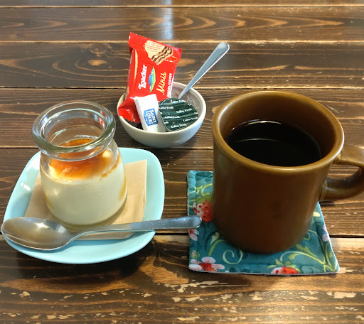 注文したプリンとコーヒーも雑にテーブルに置かれ(写真を撮るために自分でキレイに並べてみましたが笑)、お店に来るのをすごく楽しみにしていただけにとても悲しくなりました。 確かに店内には注意書きの張り紙が至る所にありいろいろご苦労されているのがうかがえますが、お店側でもちょっとした言い方や丁寧な接客(せめて挨拶ぐらいは🥲)を心掛けていればそうそうトラブルもないのではないかなって思います。
