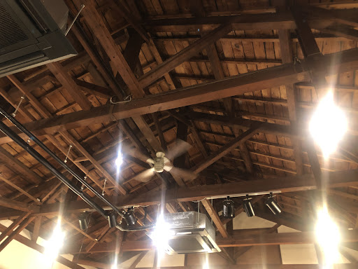 元工場の店内は、とても広くて天井も高く、開放的 梁や柱などがむき出しで、味のある天井の構造も丸見えです さらに、建具など昔のままを上手く再利用されていて、大きなテーブルに小さい引き出しが付いていたり、今では見ない素敵な家具も沢山