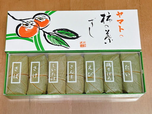 サバとサーモンの柿の葉寿司か… 7種の味の柿の葉寿司かを迷いましたが… いろんな味を食べてもらいたくて、7種の方を購入🤭