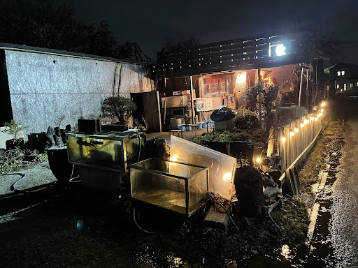 店の前?横の 駐車場側に マス?らしき魚の水槽があるが、 メニューには無いので 観賞用のペットかも知れない…