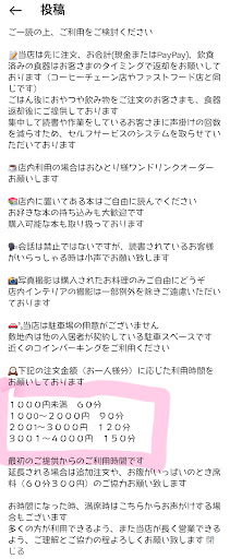 ワンドリンク制、金額により滞在時間が限定されます。 普段、カフェインレスを選んで購入している立場としては拍子抜けで嬉しい誤算でした。